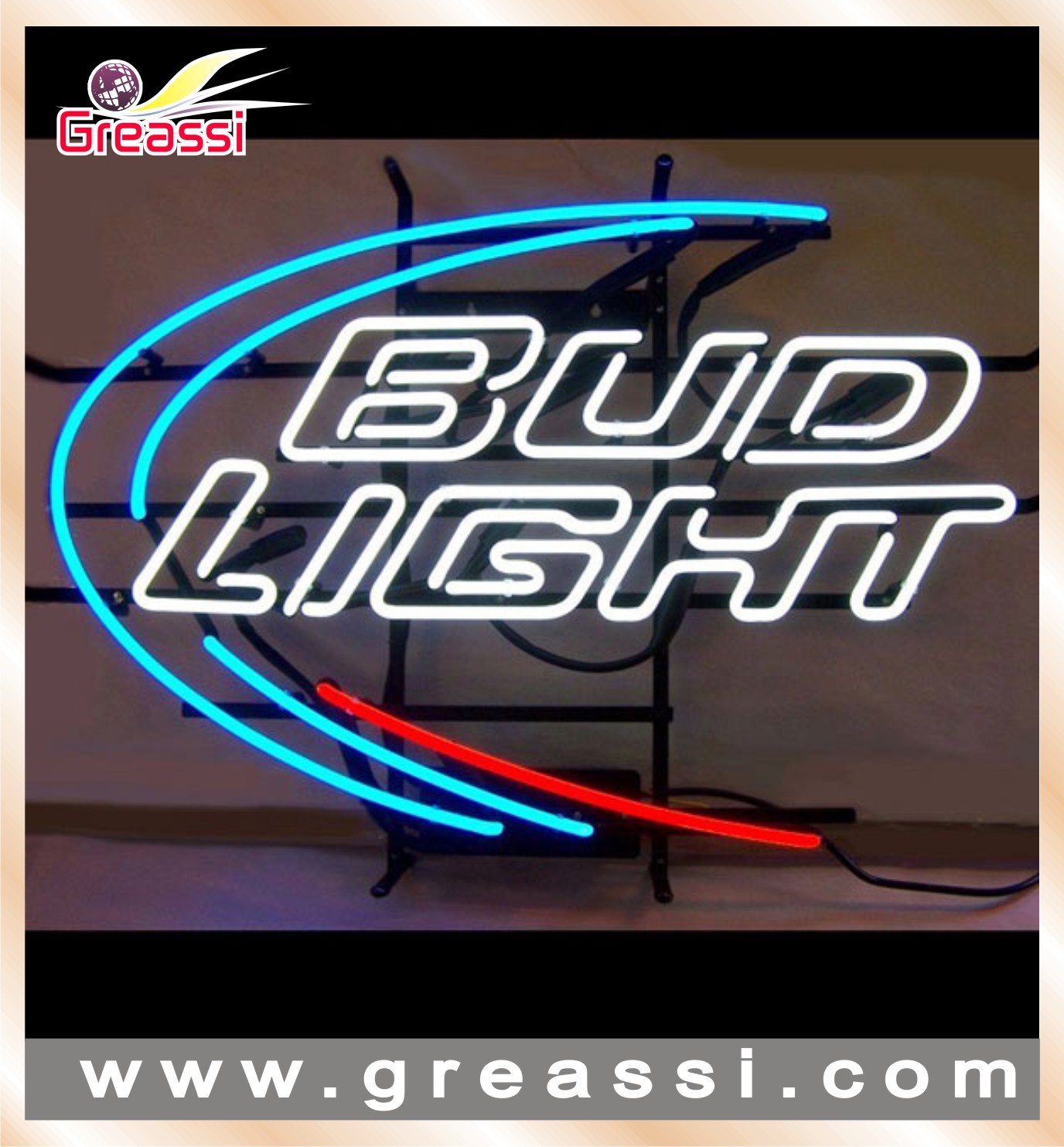 The Bud Light NEON Sign features the logo in multi-colored, hand blown neon tubing and looks great in any bar or man cave. The glass tubes are supported by a black finished metal grid, which can be hung against a wall or window; they can even sit on a shelf.